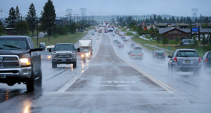 Wet weather conditions made for bad driving conditions on Highway 93 in Kalispell on Tuesday, June 17. (Brenda Ahearn/Daily Inter Lake)