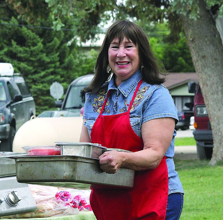 President of the Hot Springs Chamber of Commerce Leslee Smith sets up for the Father's Day barbecue.