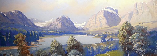 Hill, however, decided to hire a muralist to expedite the process. The paintings are not signed, and no history or record has been found identifying the artist. Numbers and locations on the backs of the panels tell where they were hung in Glacier Park Lodge.