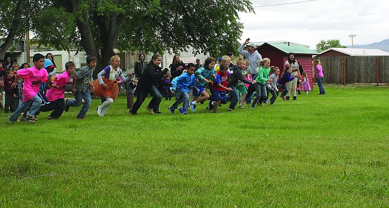 A line of kids take off towards the finish line during the kids games on Saturday in Hot Springs.