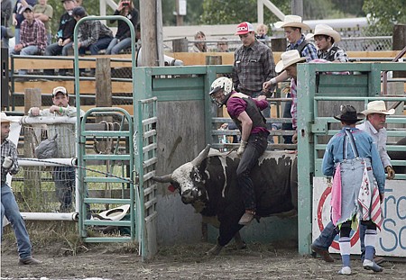 Since no one had a qualified ride, some of the prize money went back to the Saddle Club and the rest went to the stock providers, Marty Wyatt, Pat Triplett and Mel Layton. The same bulls and many of the same riders arrived in Libby on Saturday night to repeat the performance - with the same results. The bulls won Saturday as well, with no rider making a qualified ride at that event.