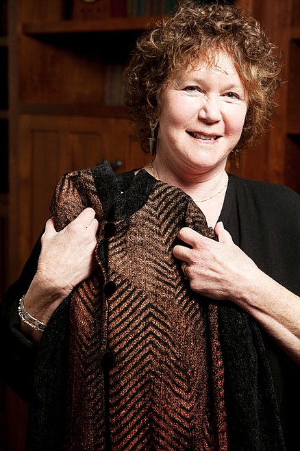 Deb Newell holds one of her hand-painted pieces of clothing. June 16, 2014 in Lakeside, Montana. (Patrick Cote/Daily Inter Lake)