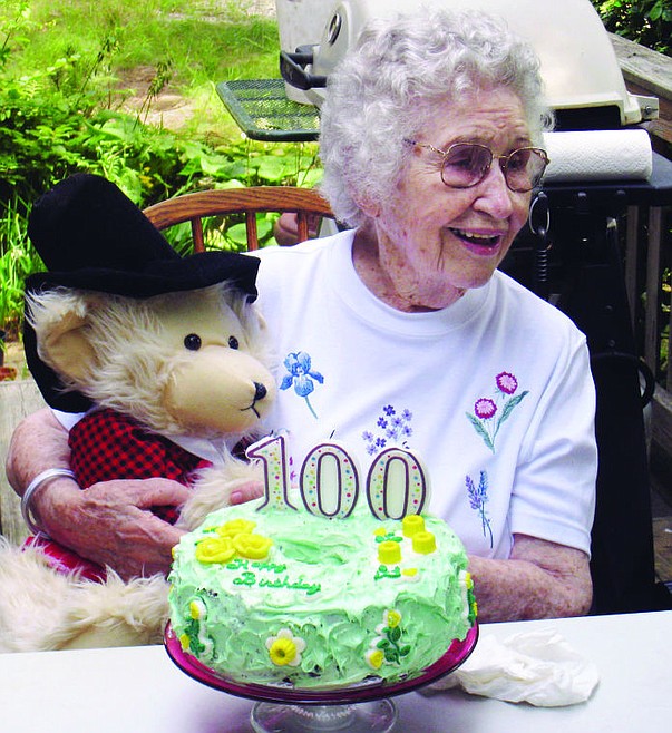 In this Aug. 21, 2009 file photo provided by Scott Barrow, his mother Elizabeth Barrow celebrates her 100th birthday at his home in Dartmouth, Mass. Elizabeth Barrow was found on Sept. 24, 2009, strangled in her Dartmouth nursing home bed with a plastic bag over her head. Laura Lundquist, a 102-year-old woman prosecutors say killed Elizabeth Barrow, still faces a second-degree murder charge. Lundquist is the oldest murder defendant in state history.