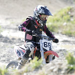 Kya Chisholm, 9, of Cranbrook, British Columbia, takes third in the 50cc open.
