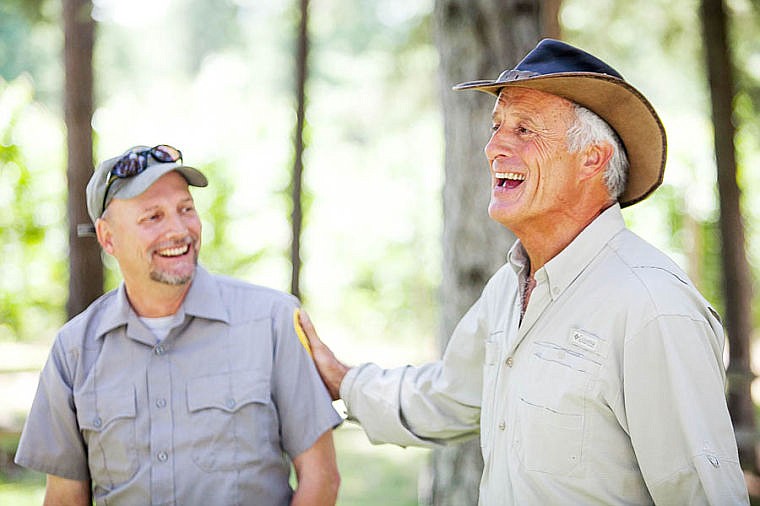 Grizzly bear management specialist Tim Manley, left, and animal expert Jack Hanna talk about the upcoming Grizzly Bear Rendezvous on July 11.
