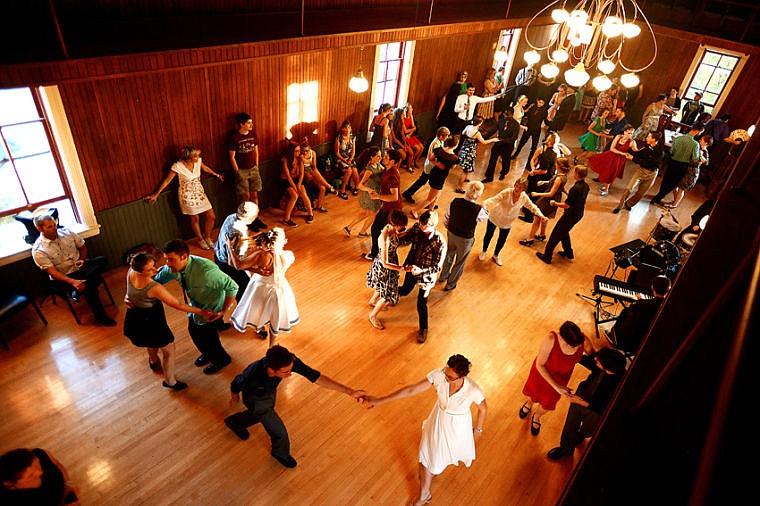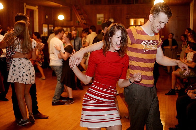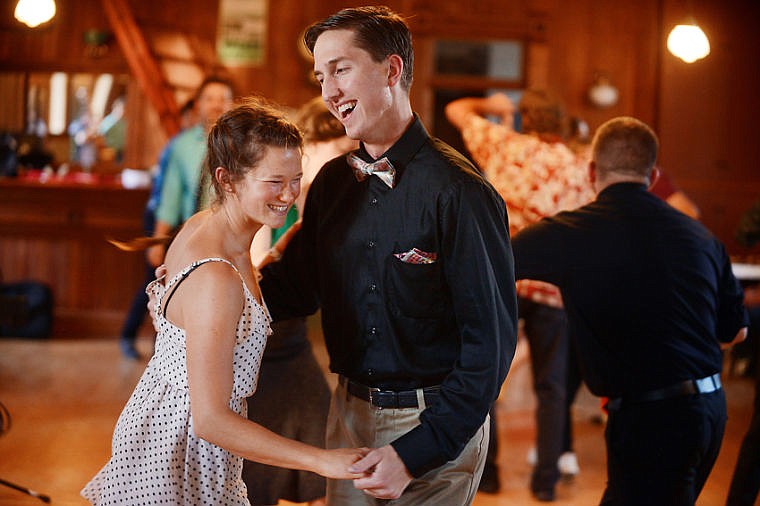 <p>Caitlin Hills of Kalispell dances with Ben White, the owner/instructor at Eastside Stomp in Seattle. In the early years White and Peter Flahiff were the primary instructors who made the trek out to Montana. The list of instructors has grown considerably and this year included: Peter Flahiff, Ben White, Irina Amzashvili, Cat Foley, Michael "Falty" Faltesek, Robin Nunnally and Solomon Douglas. (Brenda Ahearn/Daily Inter Lake)</p>