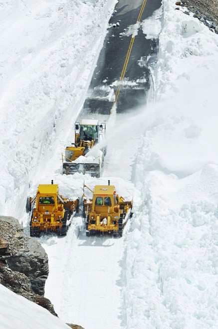 Glacier National Park plow crews on Wednesday made their way back to the Big Drift at Logan Pass to resume work that was underway on Going-to-the-Sun Road before last week’s torrential weather.