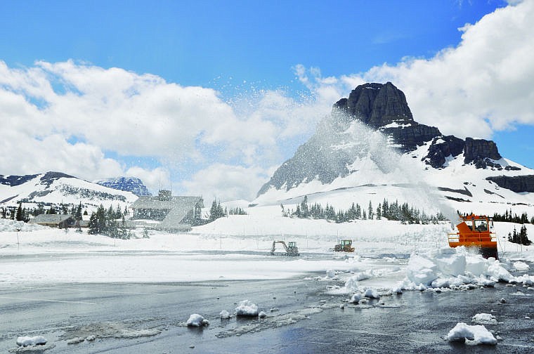The crews were cutting through the drift and clearing the parking lot at Logan Pass, and park employees with hand tools were expected to begin removing snow from the Logan Pass Visitor Center area. A thick layer of ice under the Big Drift may take time to melt out.