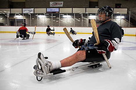 The sled hockey sessions are conducted in increments. This series of sessions was hosted and sponsored by Veterans of Foreign Wars Post 889 in Coeur d'Alene and the nonprofit Inland Northwest Disabled Veterans Sports Association.