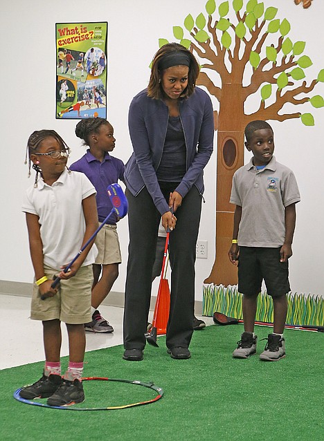 The announcement at the White House was part of a week of events marking the fourth anniversary of the first lady's "Let's Move" program. Mrs. Obama also traveled to Miami Tuesday to announce that the Boys & Girls Clubs of America and the National Recreation and Park Association will serve more fruits and vegetables at after-school programs and ensure kids get 30-60 minutes of physical activity a day. NBC's "Parks and Recreation" star Amy Poehler introduced the first lady.