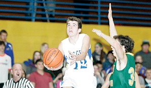 Collin Johnson scores a lay-up in first quarter vs. Whitefish 12-21-13.