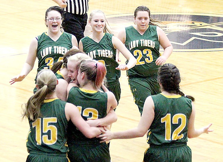 St. Regis' girls celebrate Friday's win over Charlo. The victory clinched the Tigers a spot in the Western C divisional tournament where their season came to an end.