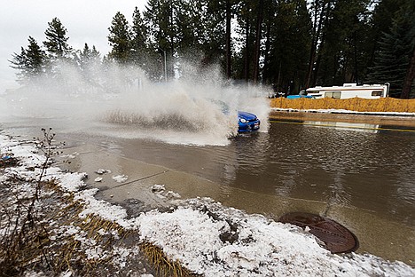 City street crews placed caution signs on Government Way in front of the RV park and other areas where street drains clogged with snow and ice left ponds of water in the roadway. By afternoon, Prairie Avenue's pavement was beneath a foot of water, prompting a road closure between Huetter and Atlas roads.