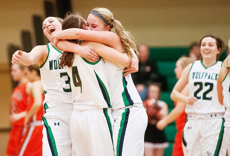 Glacier girls celebrate their victory over Flathead on Friday night at Glacier High School.
