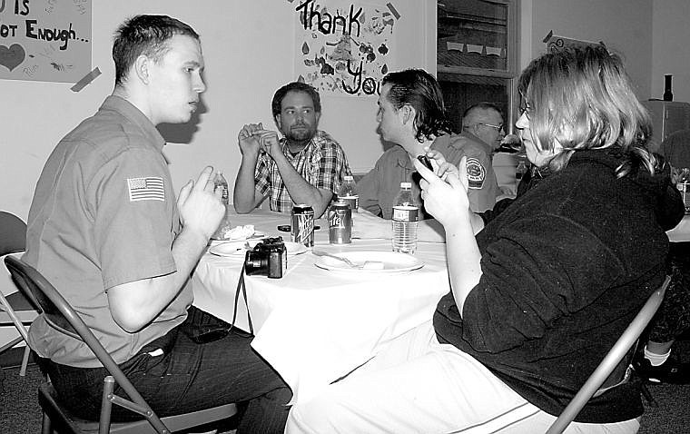 Josh Matlock, Robert Kenyon and Katie Kenyon relax after their meal at the Superior Firefighter's appreciation dinner.