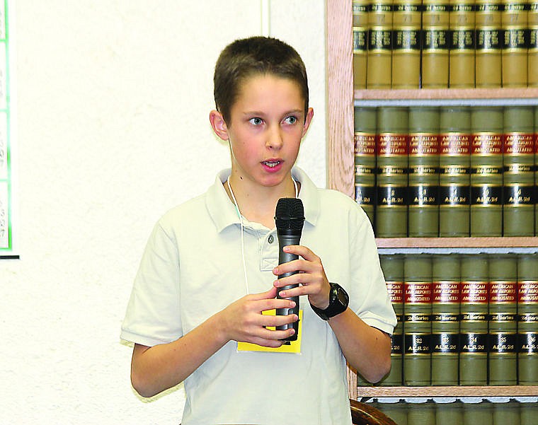 Sixth grader Ethan Brown of Thompson Falls spells his winning word.