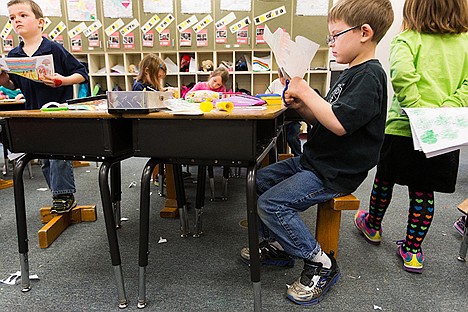 Campbell’s students on Thursday were busy making “Leprechaun traps,” and the were constantly moving around. Getting off the chairs, standing, then back on.