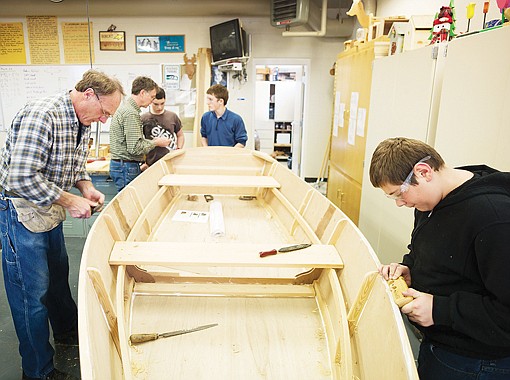 For the better part of his life, Art Burch IV built and repaired wooden boats with the Glacier Park Boat Co. Last week, Burch and three boys from Columbia Falls Junior High School were putting the finishing touches on a boat of their own.