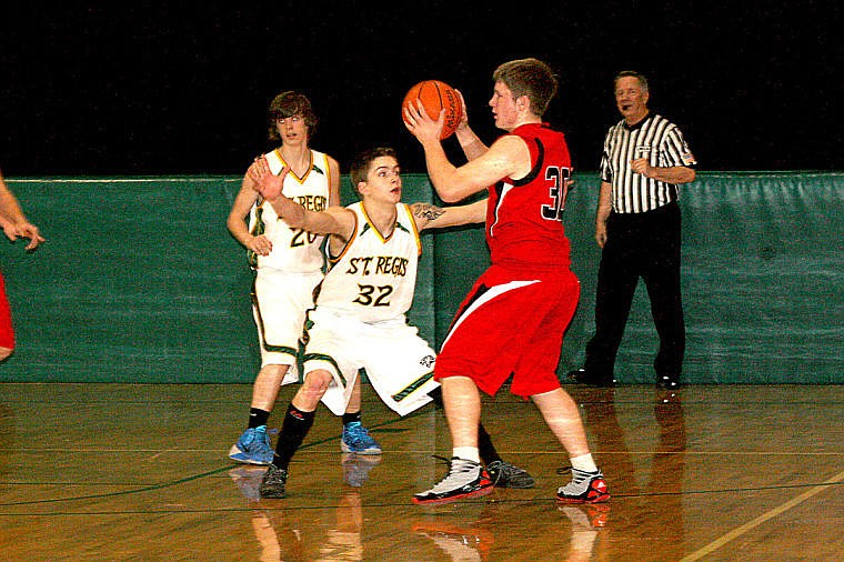 Tigers top scorer Dakota Wickham guards an opposing player during a St. Regis home game.