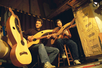 As musicians and guitar-makers, Anthony and David Powell have answered their share of questions from onlookers curious about the uniquely-shaped instruments — essentially a combination of conventional guitar with an additional strings available for plucking. Distinctive, too, is the passion that the instrument inspires among its devotees — a force that eventually influenced the Powells’ career as artisans.