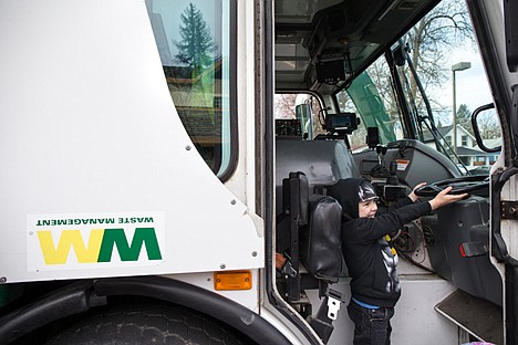 The children watched as Lund, using computer controls inside the cab of the garbage truck, lifted and emptied a curbside cart using an automated arm and then activated a compactor to smash down the trash.