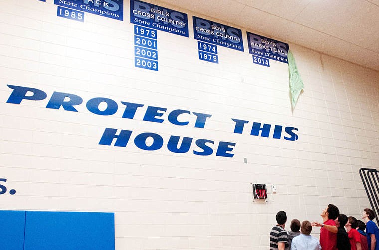 At the beginning of the 2013-14 basketball season, head coach Josh Downey pointed to the bare wall underneath section designated for boys basketball state championships and told his team they were going to put a banner on that wall.