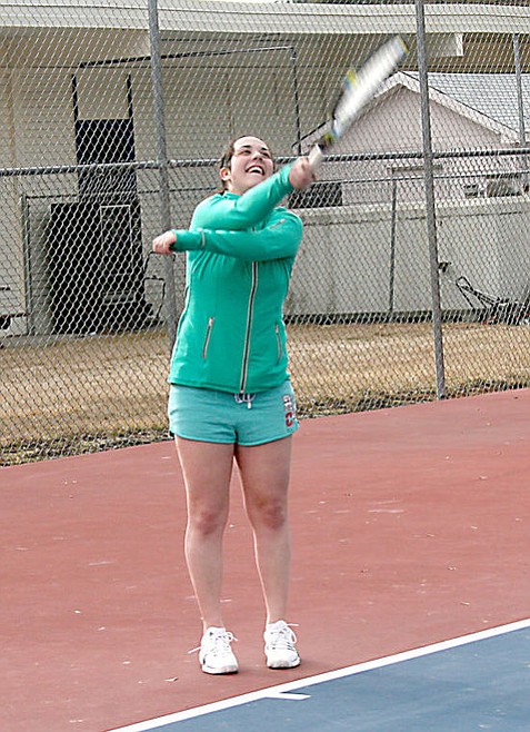 Alberton Senior Hailie Bahm serves the ball during a practice session of the Alberton-Superior tennis team.
