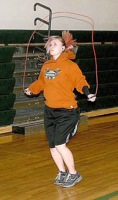 Senior Arianna Jones does a workout with a jumprope during an early practice session of the St. Regis Track and Field team.