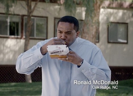 Taco Bell's ad agency, Deutsch LA, found around 400 men and women with the name Ronald McDonald, Ronnie McDonald or some variation, Niccol said. The McDonalds show their approval of the food with comments like, "It's not messy" and "Mmm, wow" and "Mmm, real good" and "It has everything I like."