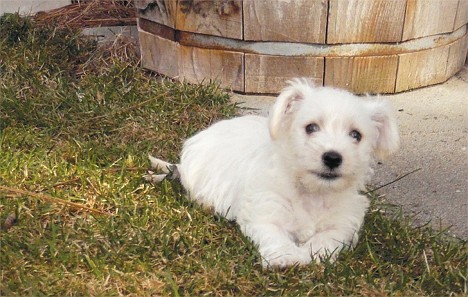 My wife called and we made an appointment to go see what they had to offer. When we showed up, they brought out two male puppies and we each held one while they gave us the background on them. Their mom was half Westie and half King Charles spaniel. The father was purebred Westie.