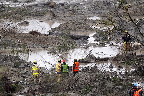 DARRINGTON, Wash. - The search by heavy equipment, dogs and bare hands for victims from the deadly Washington mudslide was going "all the way to the dirt" as crews looked for anything to provide answers for family and friends a week after a small mountainside community was destroyed.