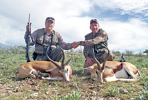 Lance Oesau and Kelley Brown with the springboks they shot while hunting in the Kaokoland area of Namibia, Africa.