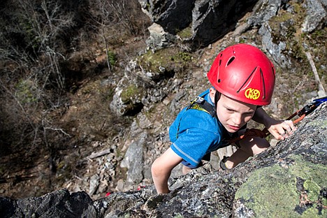 <p>GABE GREEN/Press</p><p>Joel Tanguay, 8, reaches the top of Death Fall Wall Tuesday while on a rock climbing expedition with his dad, Jeff, and his brother, Conner, at Q’emiln Park in Post Falls.</p>