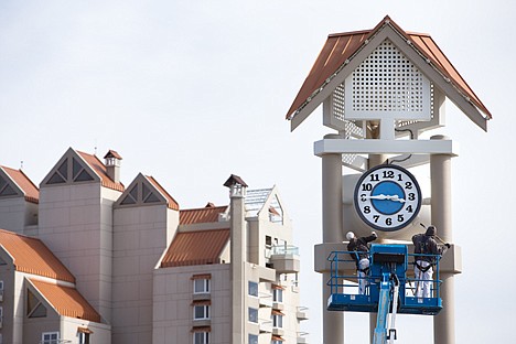 <p>GABE GREEN/Press</p><p>Painters from Travis Painting give the Coeur d’Alene clock tower a fresh coat of paint Thursday afternoon.</p>