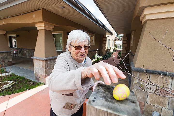 <p>SHAWN GUST/Press</p><p>Margaret Golden, a resident at The Courtyard at Coeur d’Alene, reaches for an Easter egg Friday during an egg hunt at the assisted living facility. Approximately a dozen residents participate in the event as part of Easter holiday celebrations. Hidden inside the eggs were either candies and meal vouchers for family members of residents.</p>