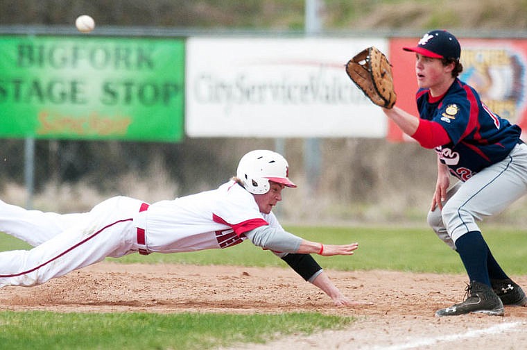 With teammate Koby Griffin on first, Griffin hit a pop fly to Kalispell left fielder Brandon Maassen, but Maassen lost it in the gray overcast sky that had just begun to break open with sunshine.