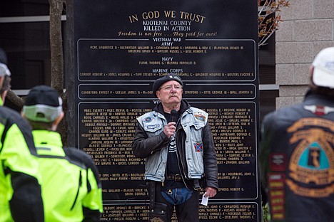 Two guest speakers presented information and support for motorcycle riders as the crowd assembled in the Veterans Memorial Plaza at 324 W. Garden Street in Coeur d'Alene.