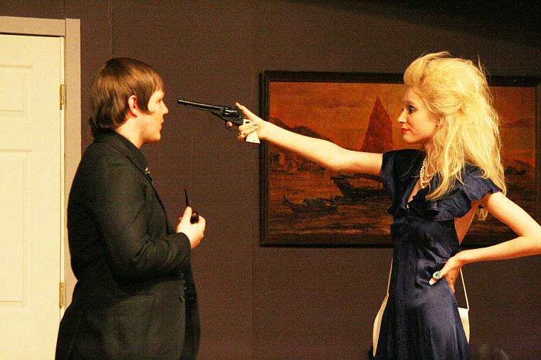 MURDER MYSTERY: Superior High School students Asa Ovitt (left) and Sienna Faydo, perform Alibis, a murder mystery on May 3.