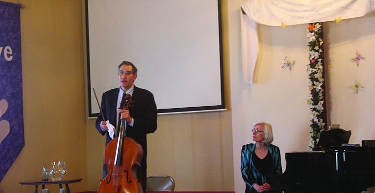 With that Drachman sat down, went to work on his cello, as Stevenson provided the musical background with her piano and an attentive silence filled the church hall.