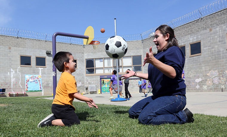 At Folsom Women’s Facility, Erica Carmona, 21, tirelessly chased her 3-year-old son the entire visit, grinning as he kicked a soccer ball around the yard or tugged her along with a jump rope. Other children played pingpong on two concrete tables, had their faces painted and played pickup games with footballs and basketballs.