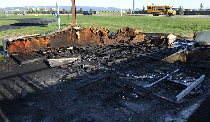 Only charred remains were left Tuesday morning at the pole vault pit at Glacier High School in Kalispell.