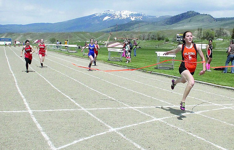 Trotter Nicole Rehbein busts past the finish line at the Sanders County Meet.
