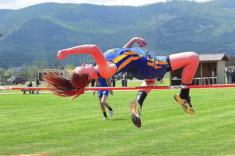 Autrey Hannum competes in the high jump competition, breaking the school record at the meet.