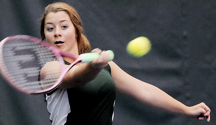 Katie Fyall of Whitefish competes at the Northwester A Divisional Tennis tournament on Friday, May 16, in Kalispell. (Brenda Ahearn/Daily Inter Lake)