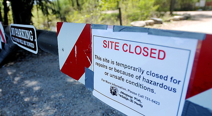 The gate is down and access is closed to the Old Steel Bridge Fishing Access Site on the east side of the river on Wednesday, May 21, in Kalispell. Access to this site and one other has been suspended due to "flooding," according to Montana Fish, Wildlife and Parks (Brenda Ahearn/Daily Inter Lake)