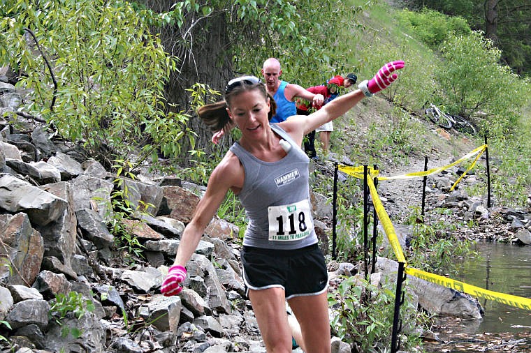 Trisha Drobeck rounds the last curve towards the finish line during the annual 11 Miles to Paradise race.