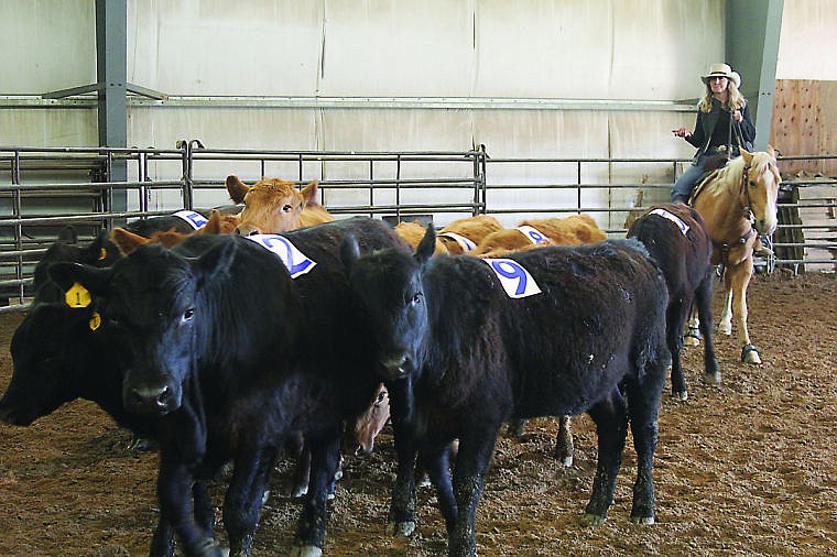 Super sort organizer Patti Waldoch pushes the cows back into the area so they can be sorted by the next participating team.