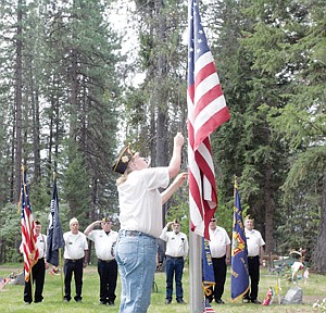 Maria Gregory had the honor of raising the flag Monday during Memorial Day cereonies at Milnor Lake Cemetery.