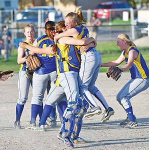 Post game jube after defeating Columbia Falls assuring a state playoff berth with Hannah England, left, Dayln Germany, Devon Gallagher, Rachel Rebo and Kelsey Klin.