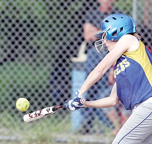With two out, Junior Mahalah Wedel's standup double in the bottom of the seventh scores two.
